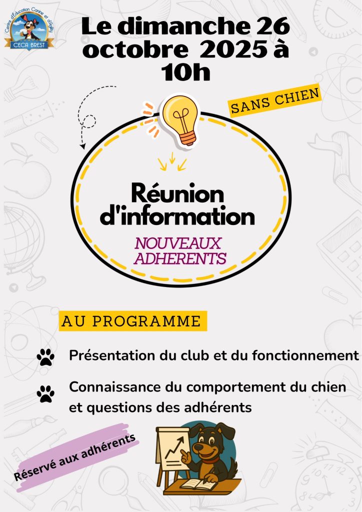 🔹 Présentation du fonctionnement du club 🔹 Comprendre le comportement canin 🔹 Échange autour de vos questions