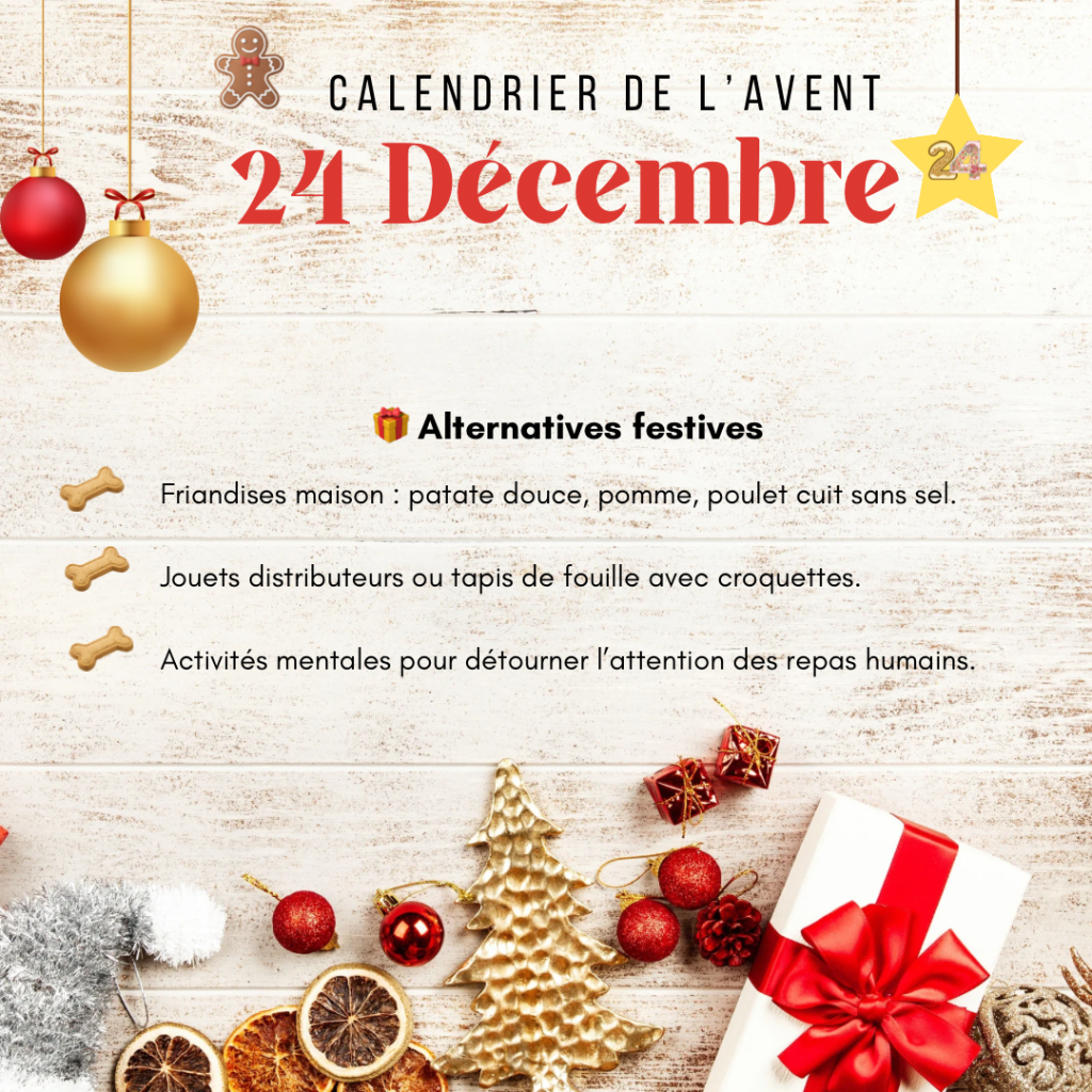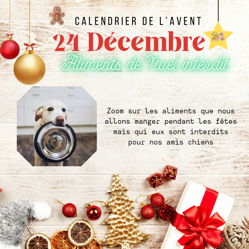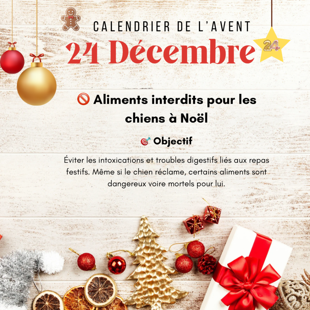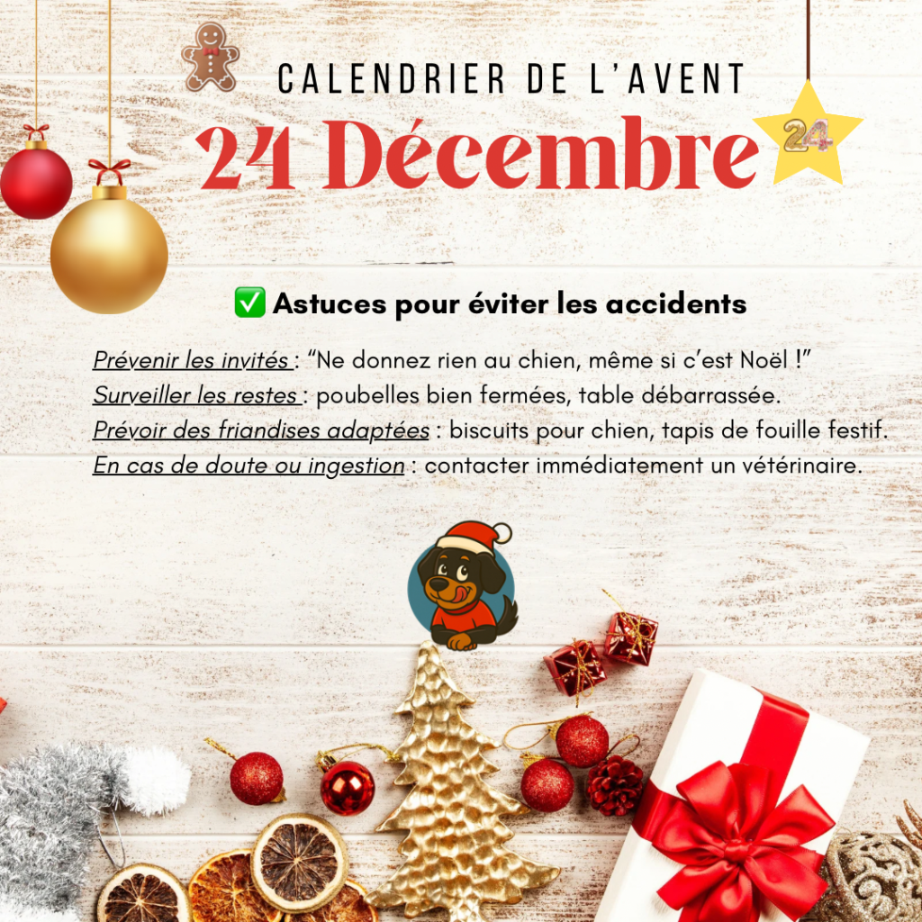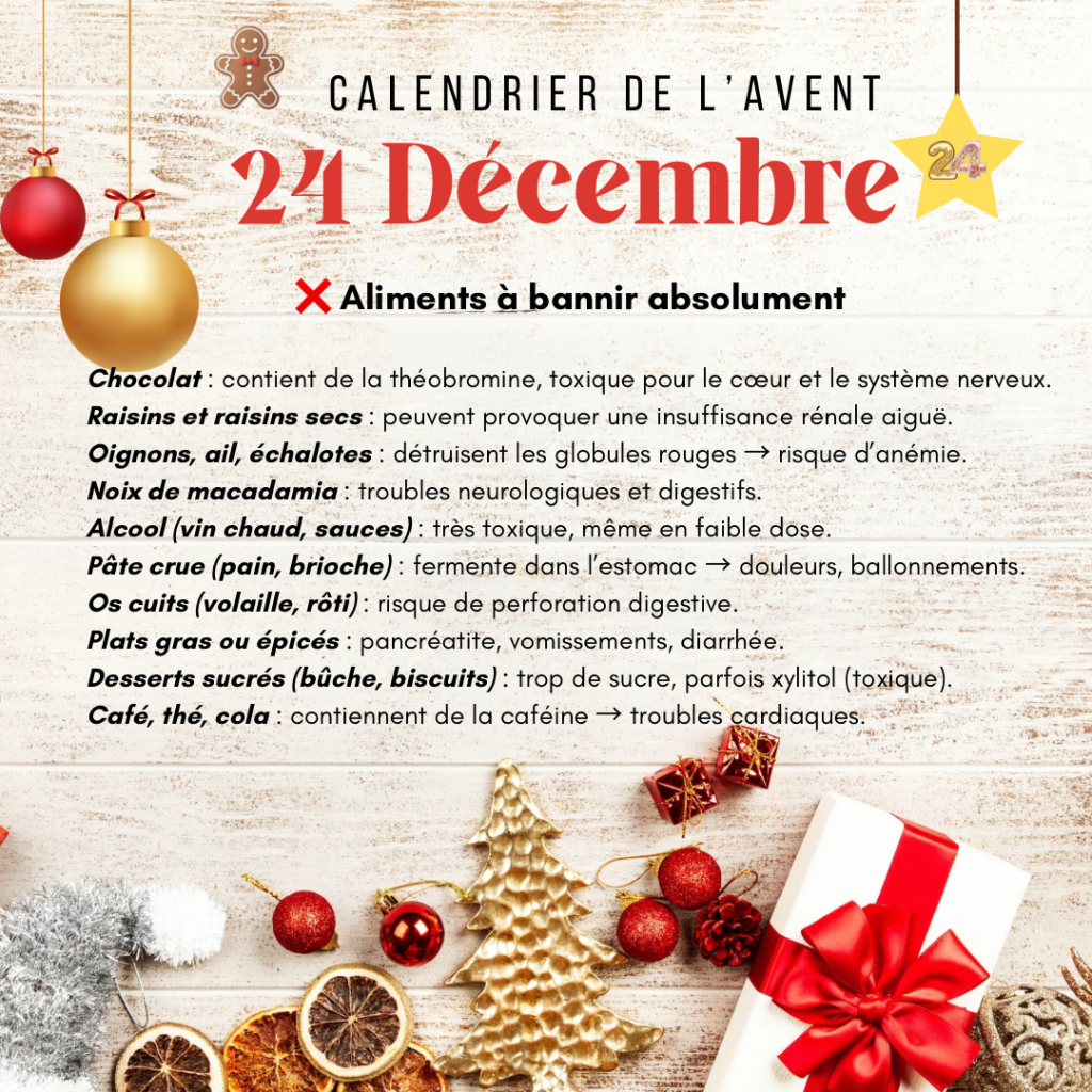 🎅 Attention aux aliments de fête qui peuvent être dangereux pour nos chiens : chocolat, raisins secs, oignons, foie gras, alcool… mieux vaut les garder hors de portée des truffes curieuses !