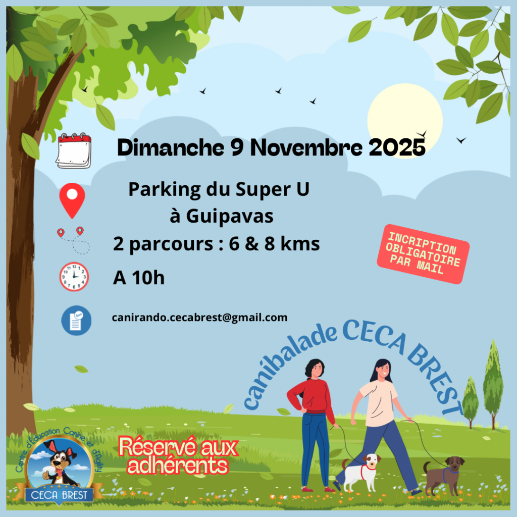 Le CECA Brest vous donne rendez-vous pour une balade conviviale le dimanche 09 Novembre 2025, de 10h à environ 12h. 📍 Parcours : 6 & 8 km autour de Guipavas 📌 Point de départ : Parking du Super U Guipavas