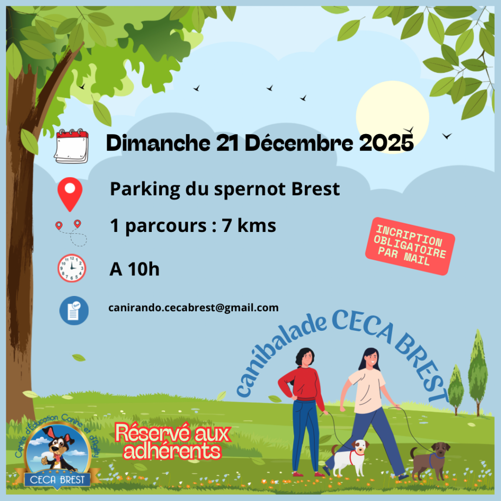 Le CECA Brest vous donne rendez-vous pour une balade conviviale le dimanche 21 Décembre 2025, de 10h à environ 12h. 📍 Parcours : 7km autour de vallée des moulins 📌 Point de départ : Parking du Spernot Brest